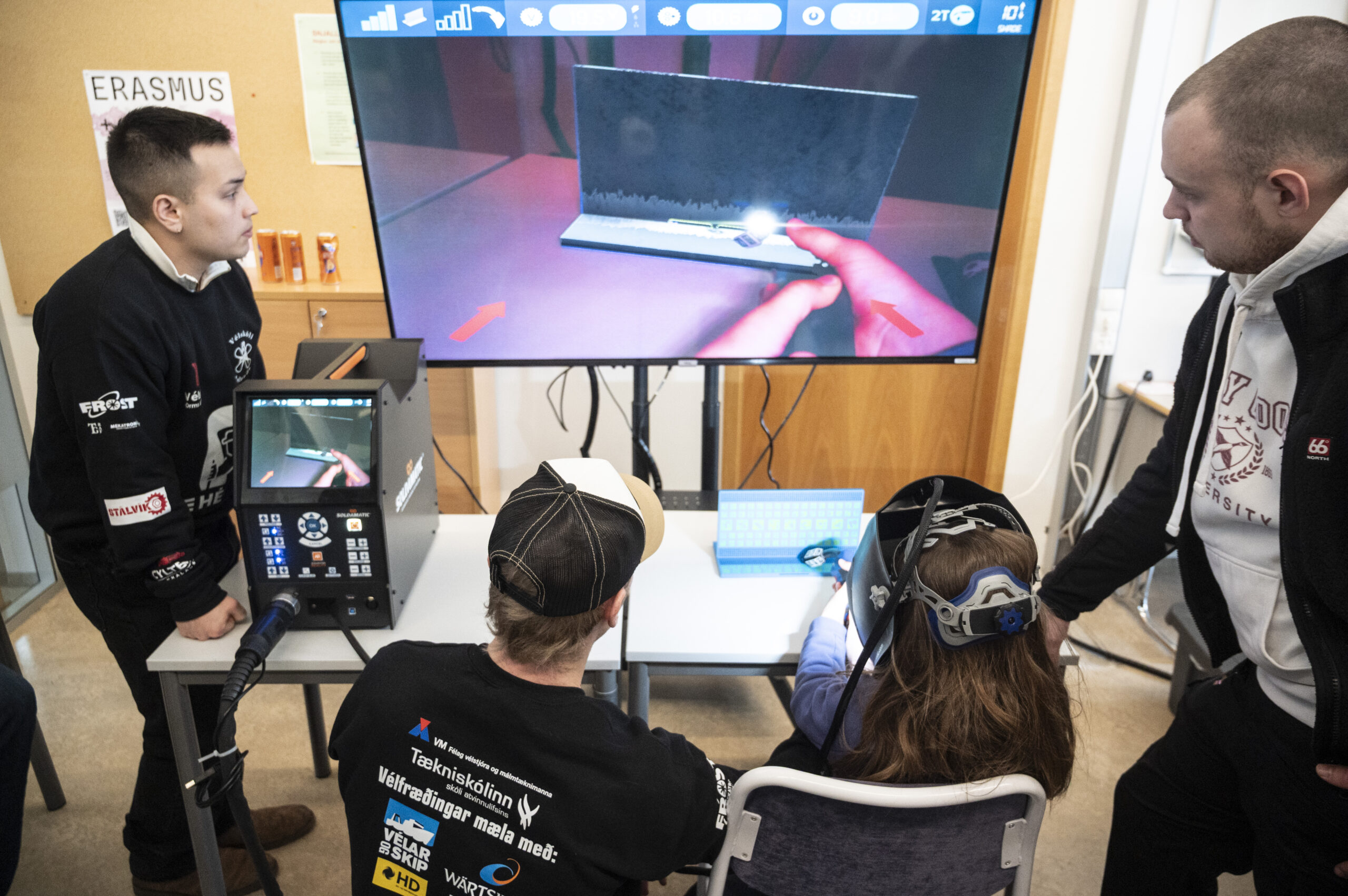 - Hér spreyta gestir sig á málmsuðuhermi.