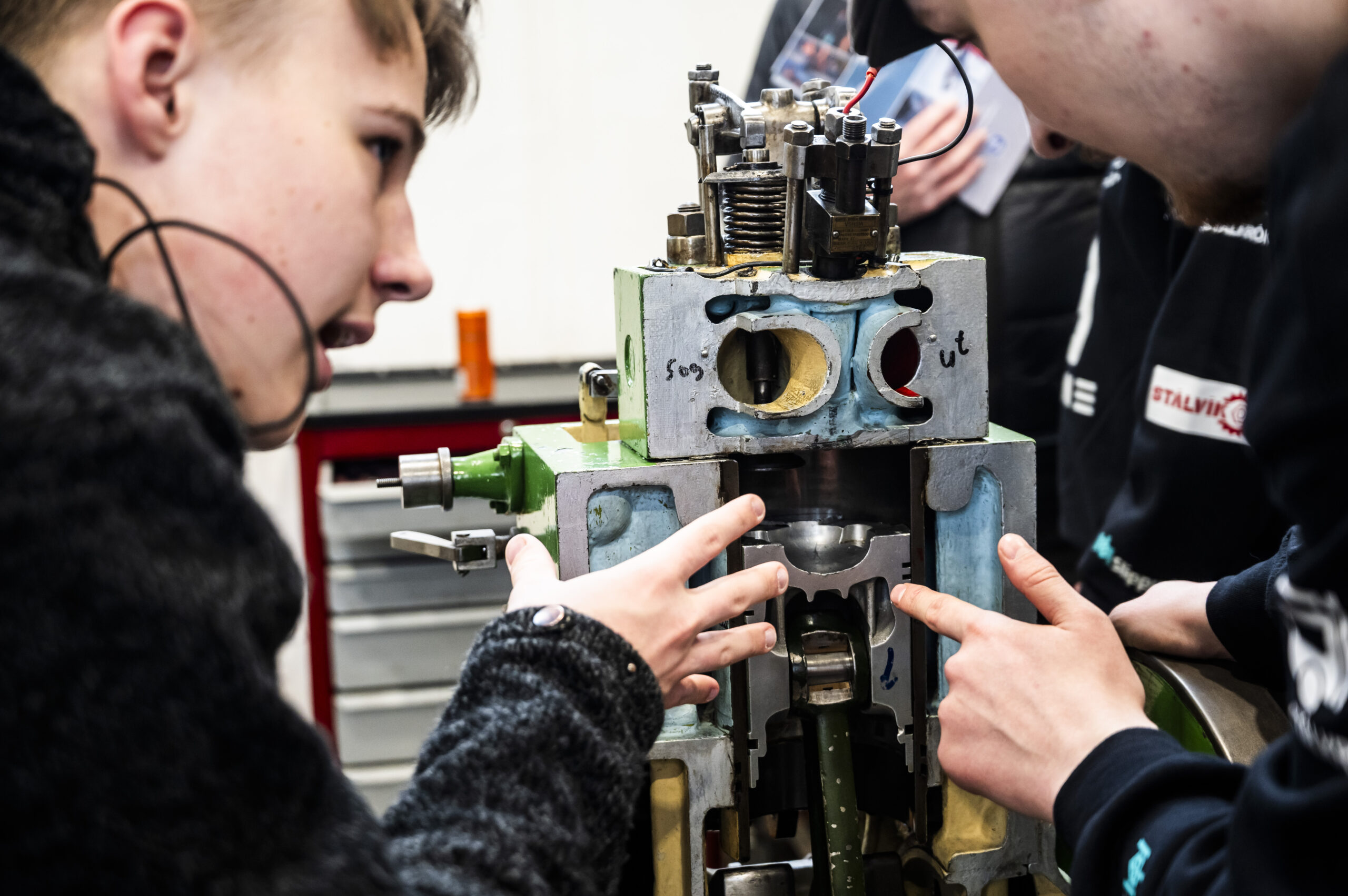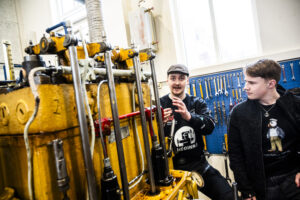 - Nemendur sýna innviðaráðherra vélarnar.